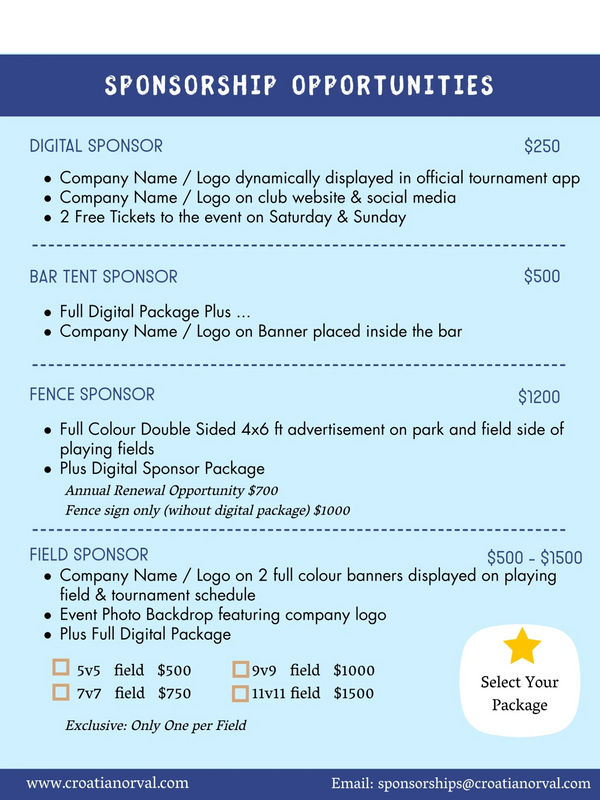 To be a proud supporter of your local community and youth sports - please email us at sponsorships@croatianorval.com
